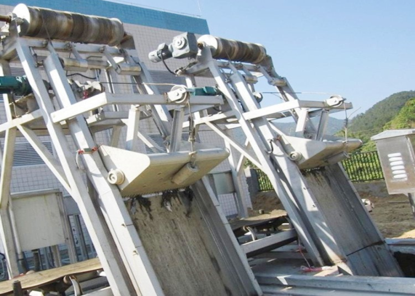 合耙与清捞:耙斗抵达井底后,翻耙电机反转,耙斗闭合并插入栅条间隙,将拦截的杂物捞入斗中。