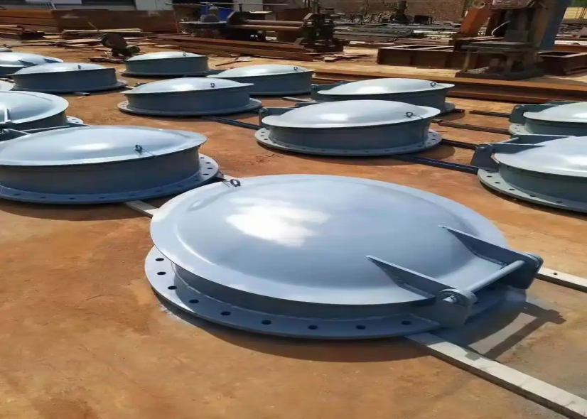 防潮拍门是我公司设计制造的一款用于排水管道或泵站出口的自动单向止回设备。该设备主要安装于排放口,旨在防止外部水体(如潮水、洪水或受纳河道水)在特定条件下倒灌进入排水管网或泵站内部,有助于保护地下设施与设备安全。它依靠水流自身压差实现自动启闭,无需外部动力,常用于沿海、沿江及存在水位倒灌风险的区域。